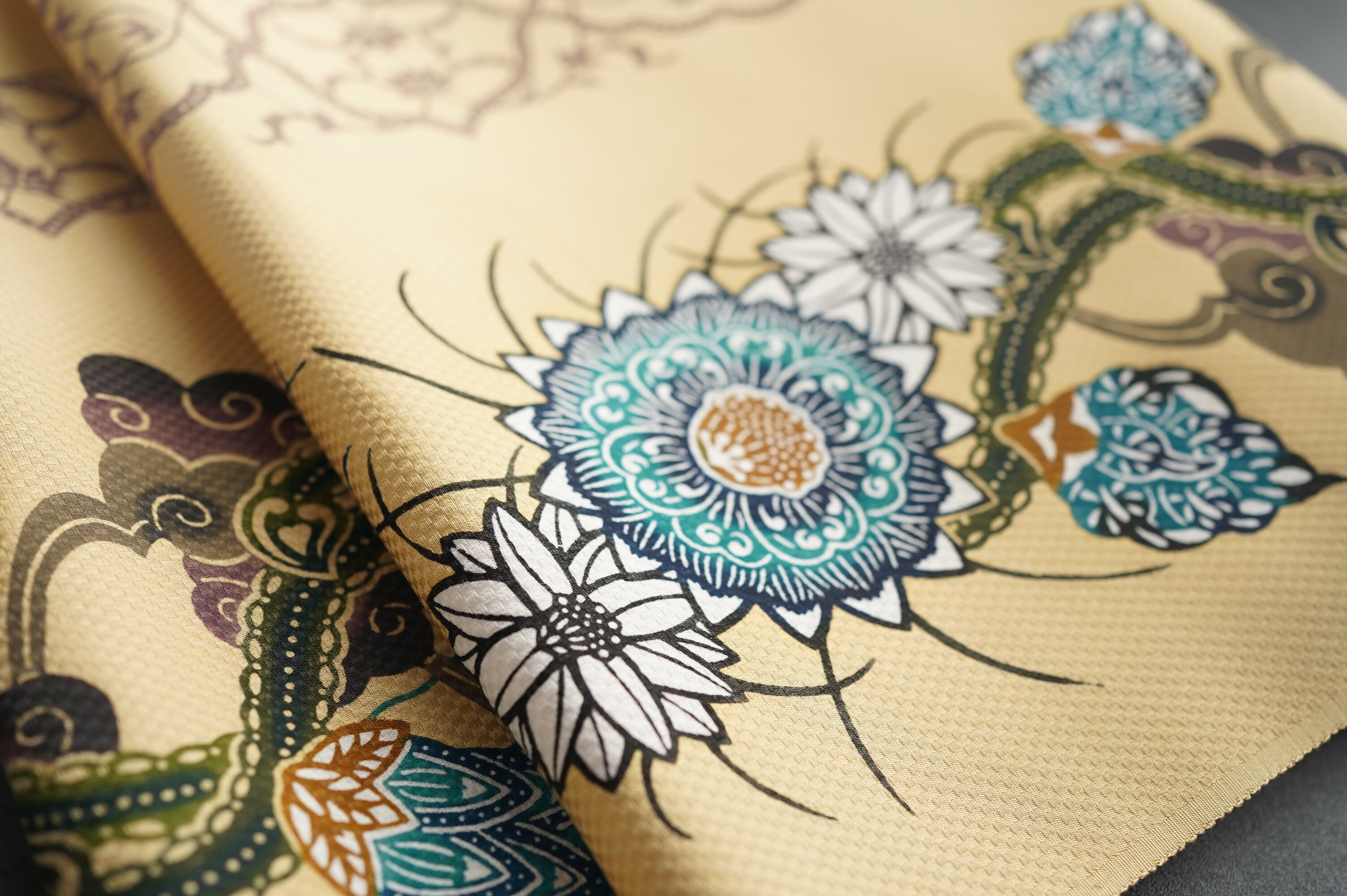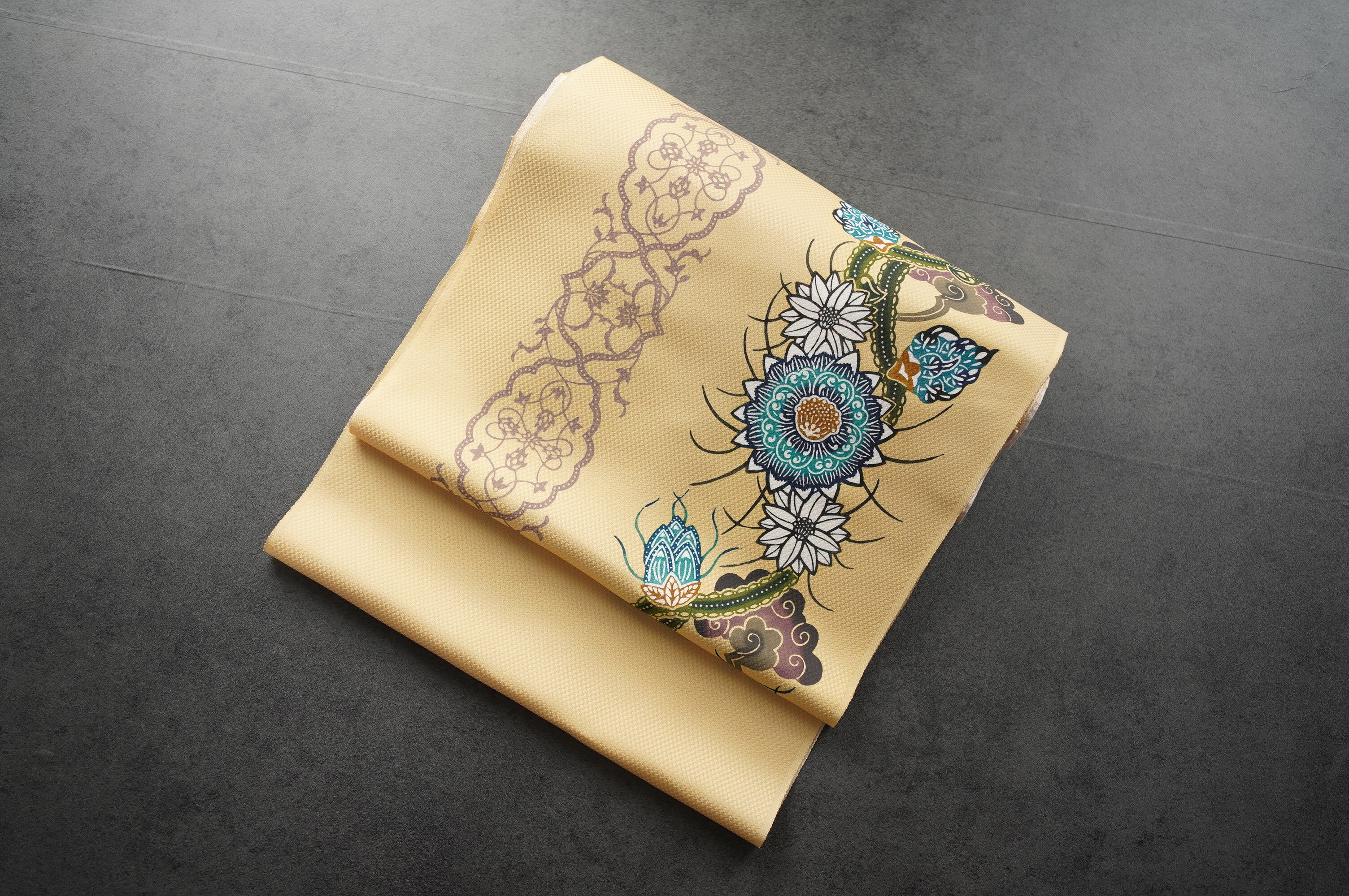 図案や顔料の色合いが、くんやさんらしさを感じる帯です。