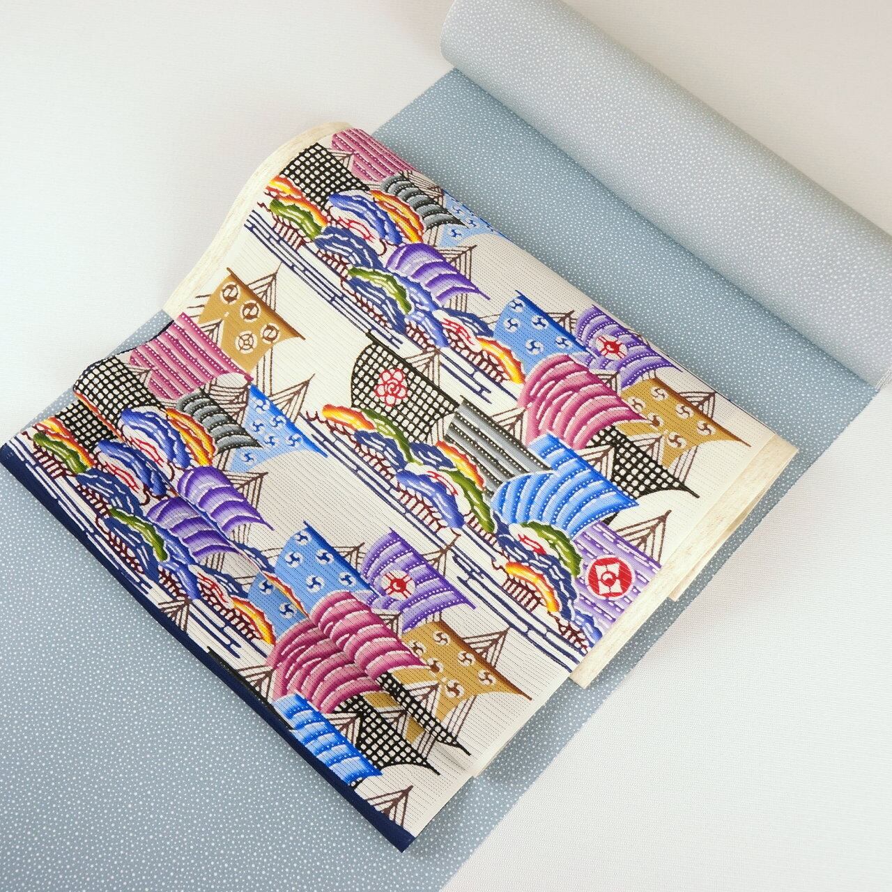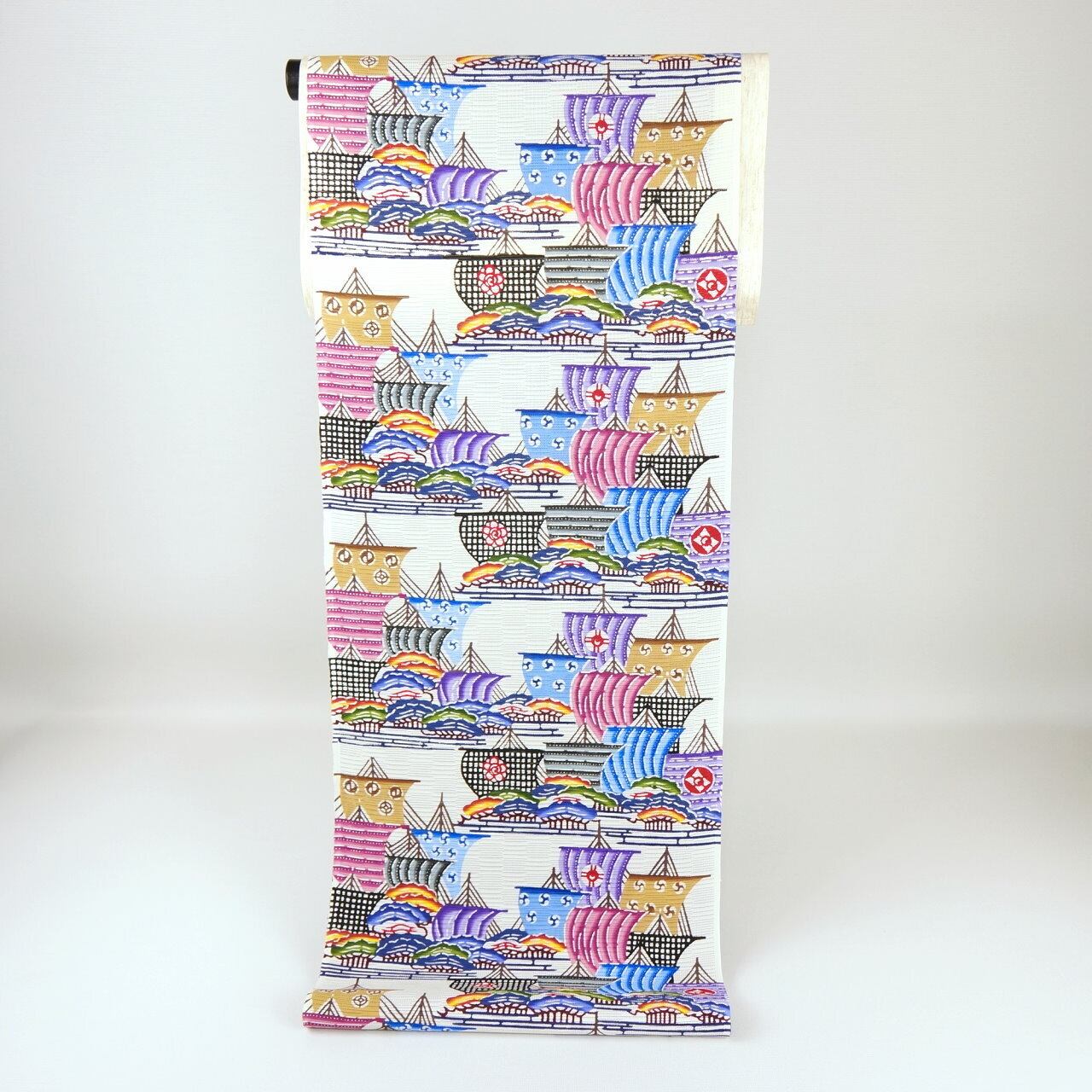 紋紗の生地に帆船が染められています。