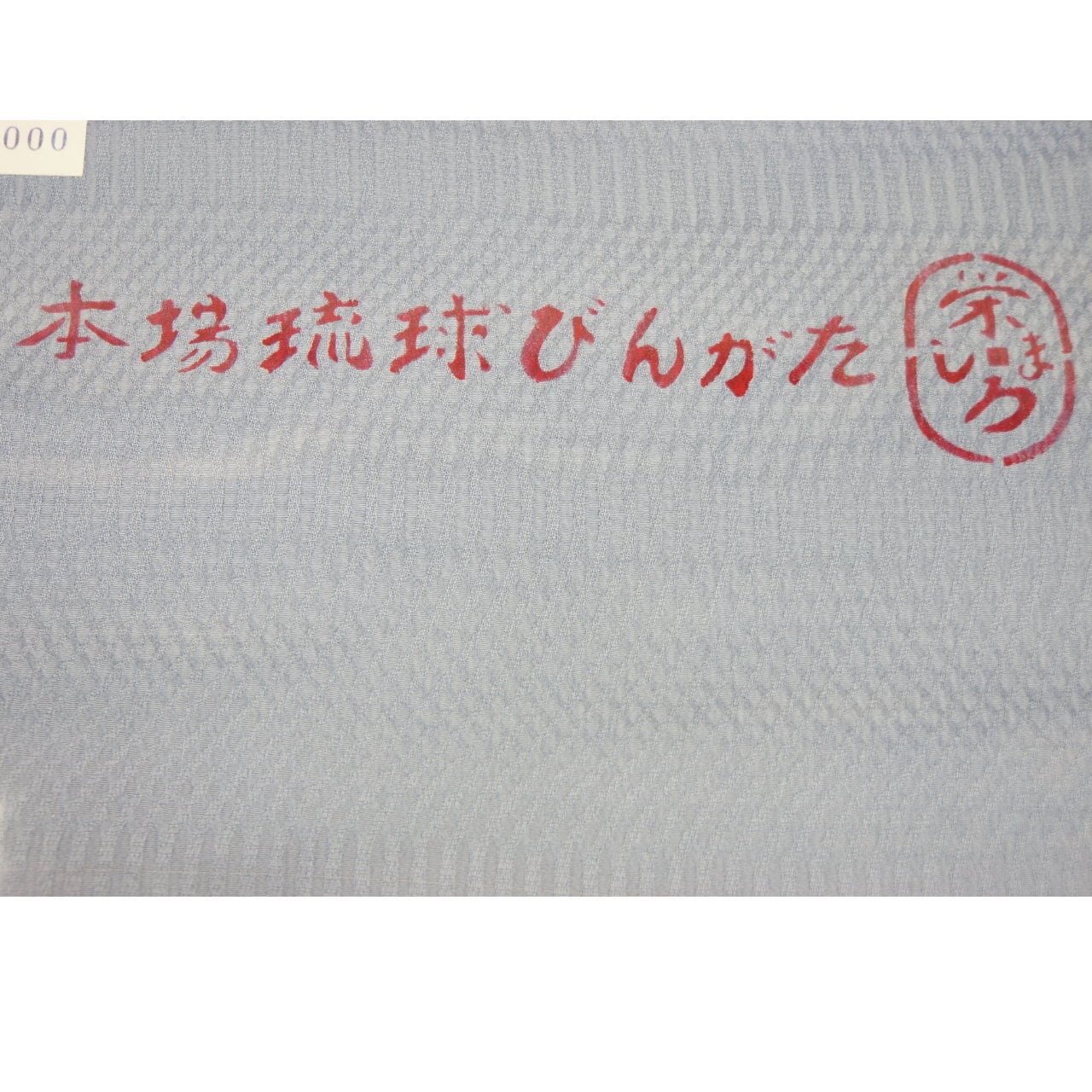 ブルーグレーの生地に古典柄の紅型です。