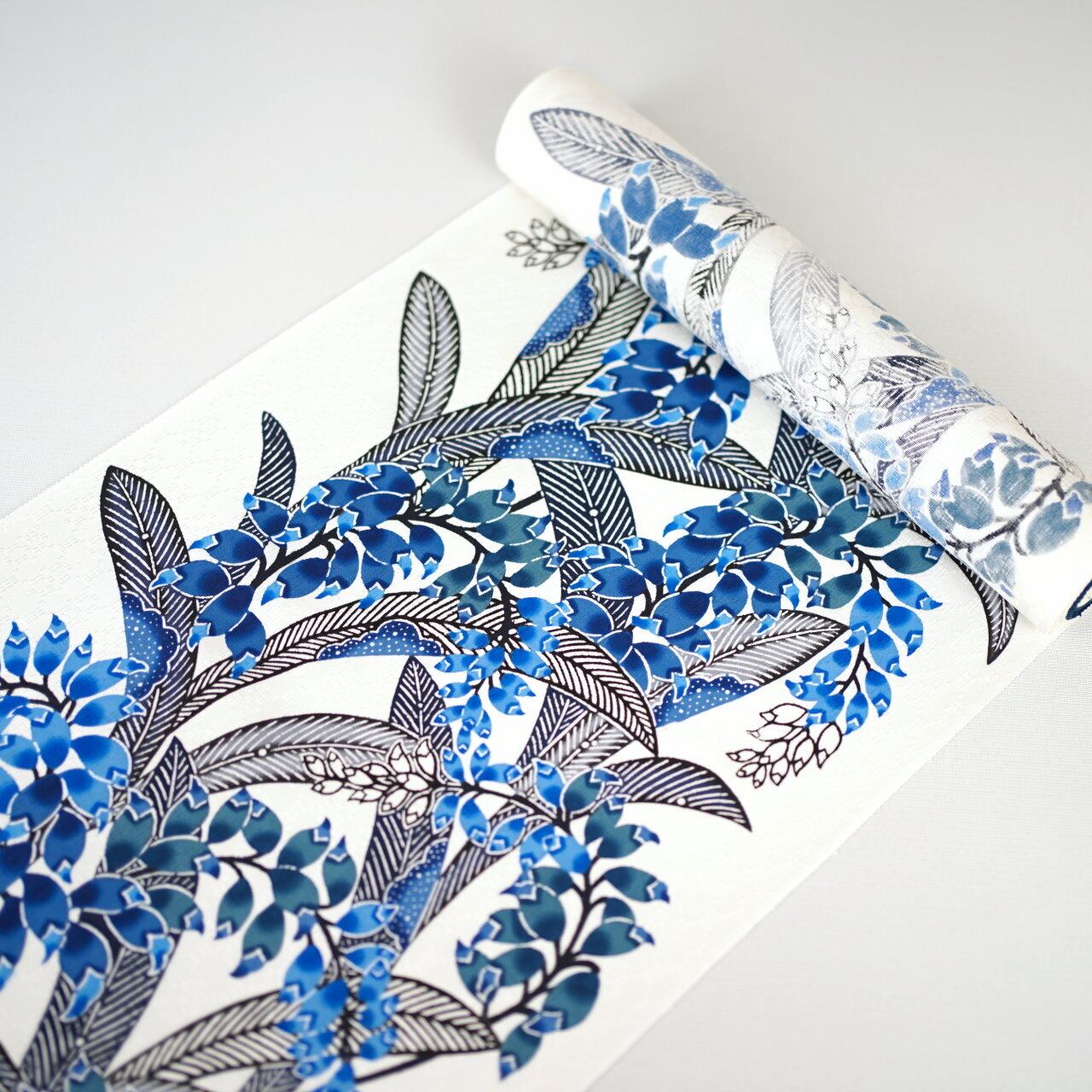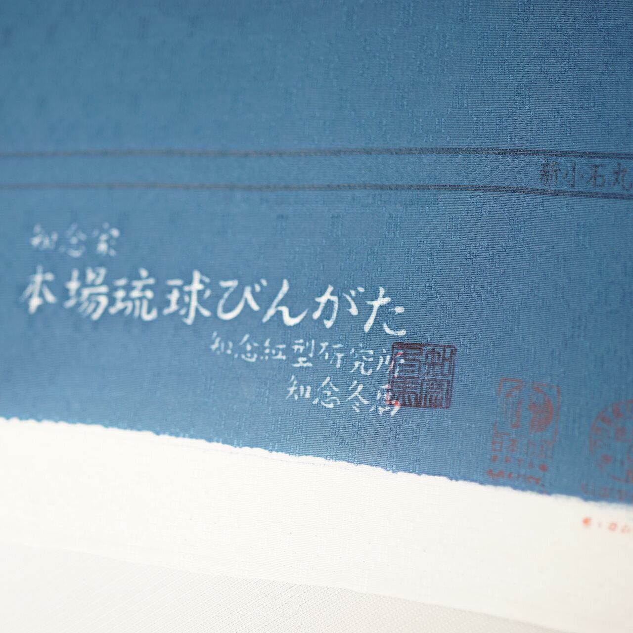 本紅型【知念紅型研究所】知念冬馬作 月桃 青色紅型(藍型)
