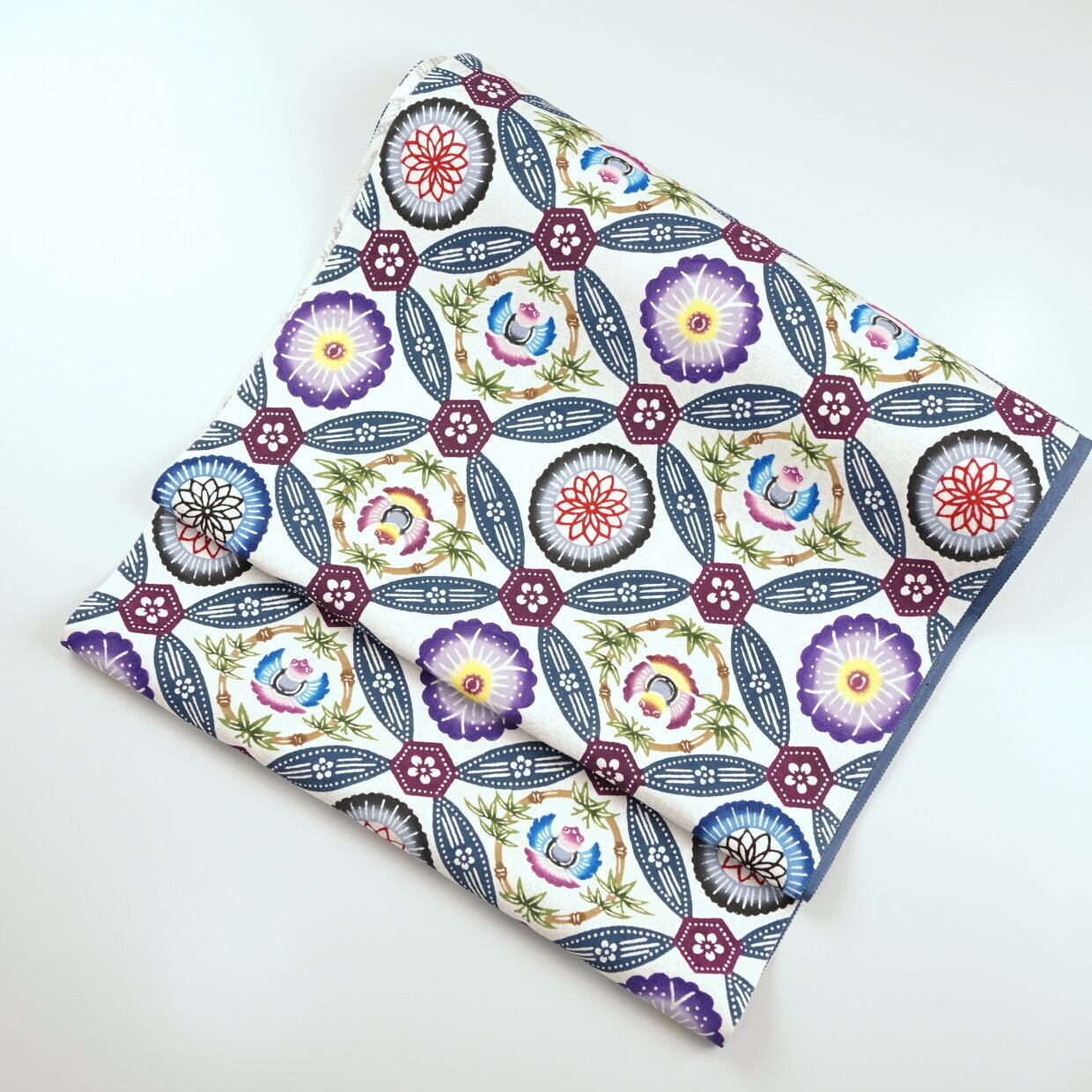 こちらの【七宝とふくら雀】は知念さんの代表的な柄で、航空会社にも採用され、飛行機のヘッドレスト等にも使われています。