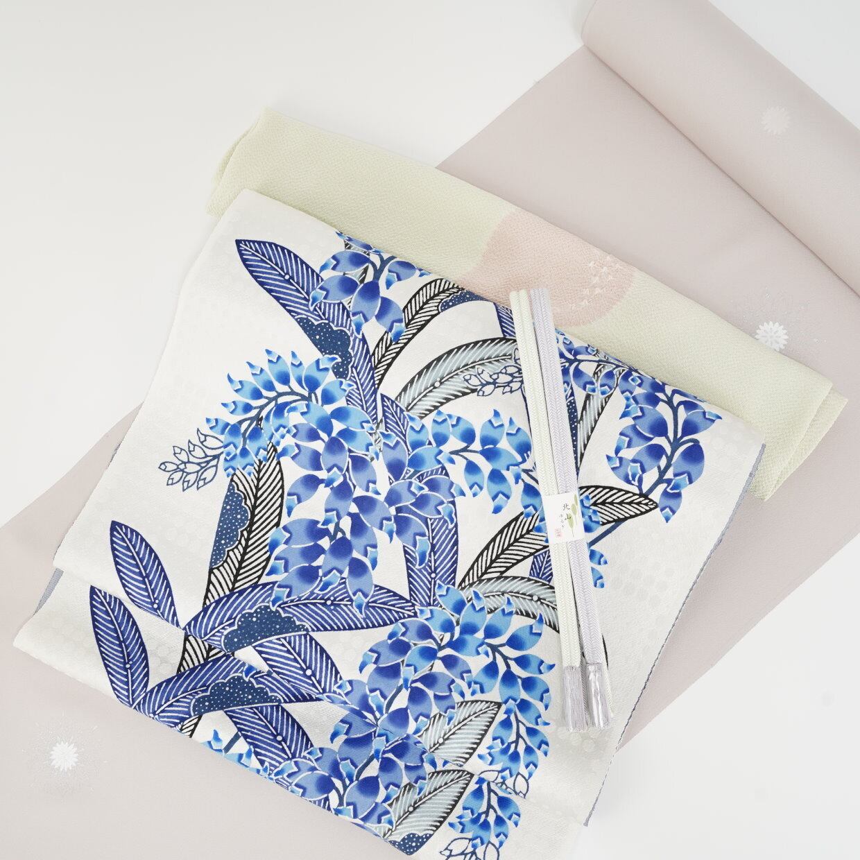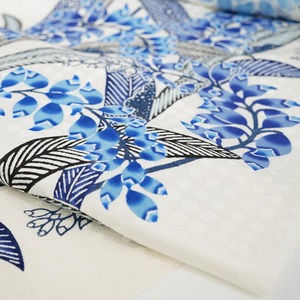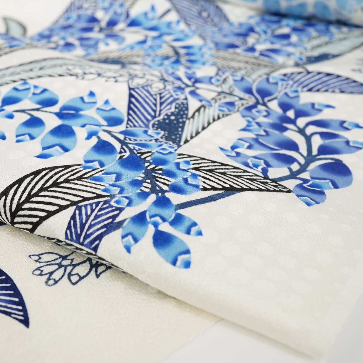 知念さんらしい「藍型(青色紅型)」で、青だけでなく、優しくグレーや黒も混ぜて染め上げています。